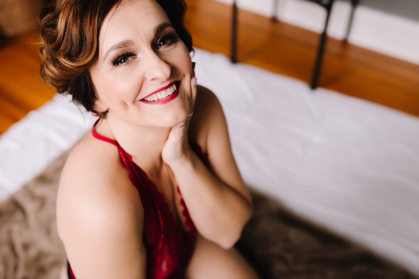 I also have a bit of experience with photographing the “sexy face” thing. Back in 2019, I got a wild hair to do a boudoir photoshoot. I don’t know why I did it. I wasn’t particularly happy with my body at that moment and I was in the process of growing out a pixie so my hair was neither short nor long. In hindsight, I wish I had waited a few years, after I’d grown my hair out and when I had lost thirty pounds, but I didn’t and boudoir photography is hella expensive — a lot more expensive than I’d anticipated — and so I’m afraid it was a one and done kind of situation.